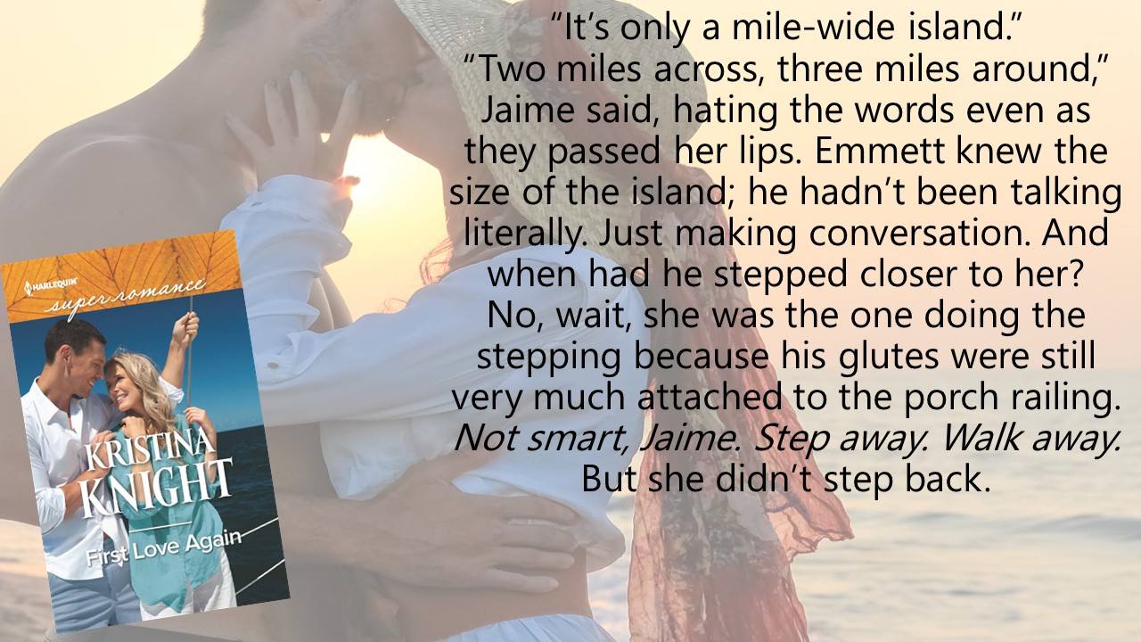 “Two miles across, three miles around,” she said, hating the words even as they passed her lips. Emmett knew the size of the island; he hadn’t been talking literally. Just making conversation. And when had he stepped closer to her?