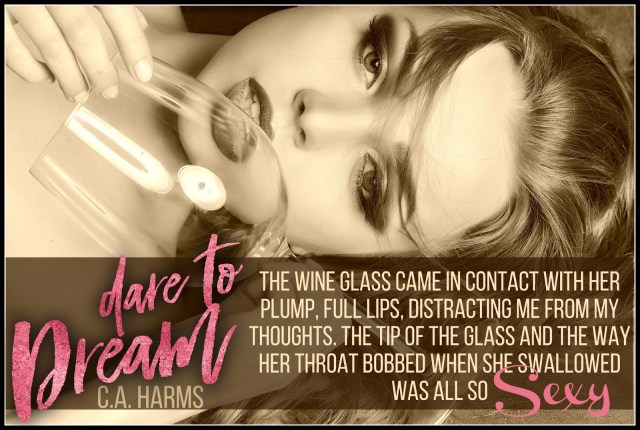 She smiled as she lifted the glass to her mouth. I couldn’t help but watch closely as it came in contact with her plump, full lips, distracting me from my thoughts. The way she tipped the glass and the way her throat bobbed when she swallowed was so sexy.