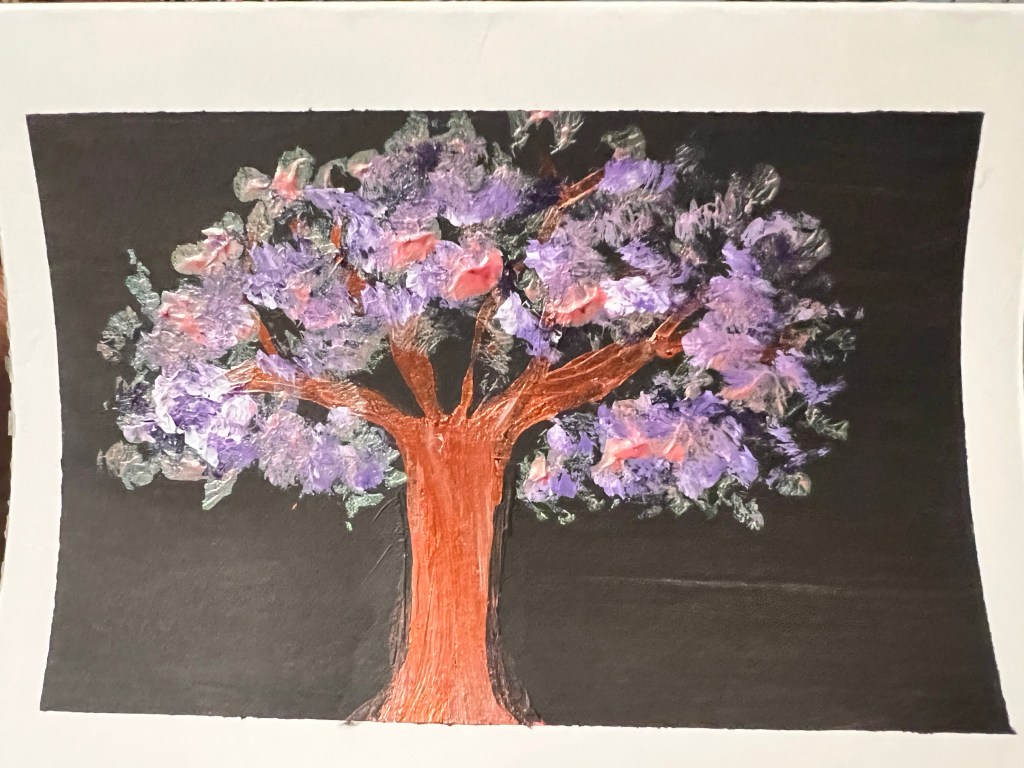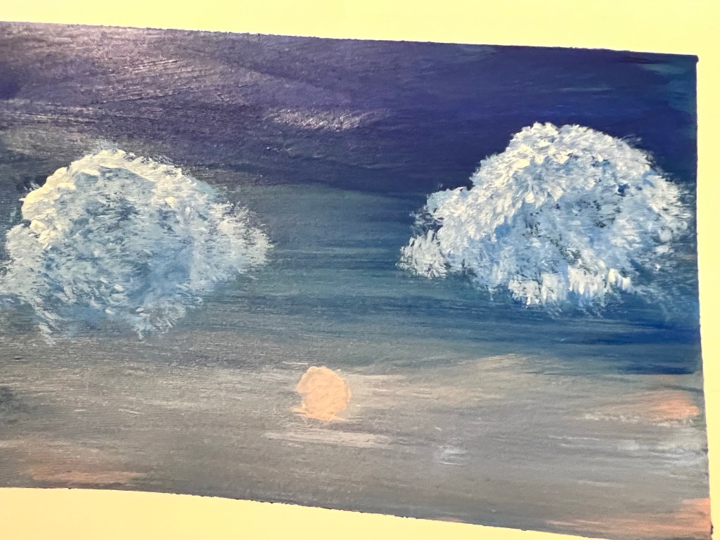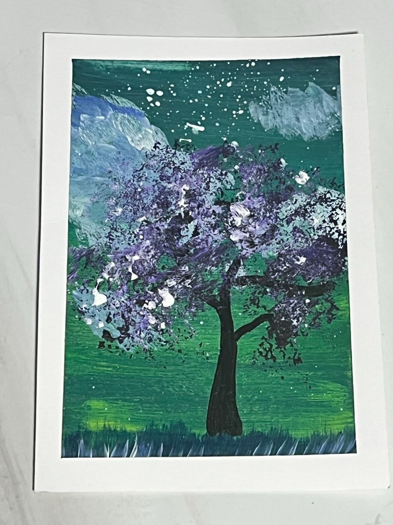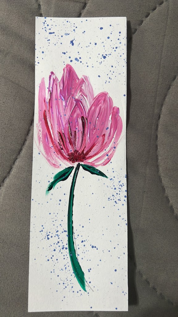 Love in A Bleak World , mixed mediaVarious Decorative Bookmarks, acrylics Flower, watercolor Flower, acrylics Dream Tree, acrylics Cloudy Sunset, acrylics Immense Night Sky , acrylics The Flowers, watercolor Dream Tree II, acrylics Sunset , acrylics Spring Flower, watercolor + penAbstract Flowers in blue, watercolor Lost at Sea, watercolor Mountains in the Morning , watercolor Appalachia at Sunrise, acrylics Spring Rose, acrylics The Cardinal , acrylics Beach Vibes, acrylics