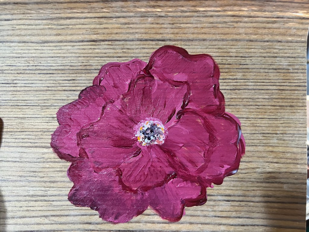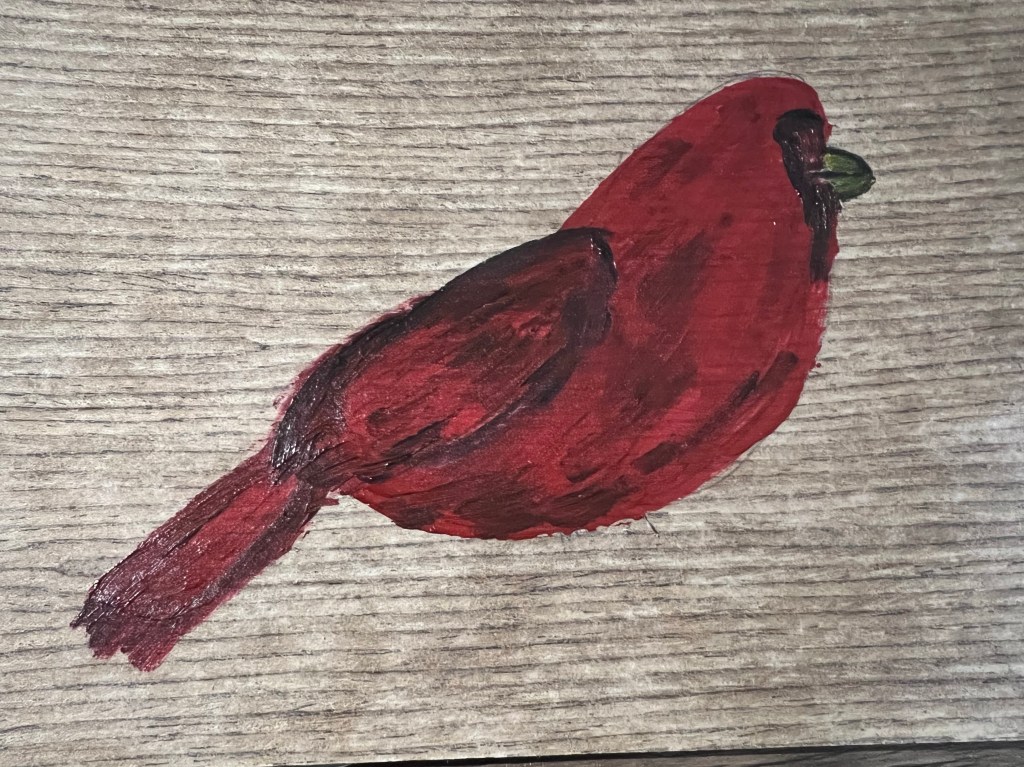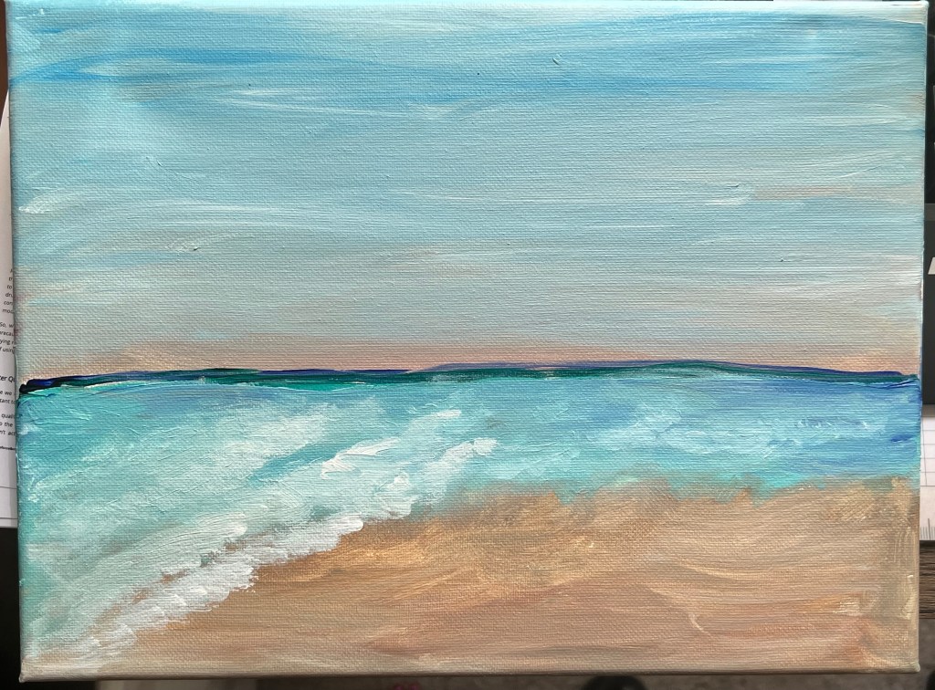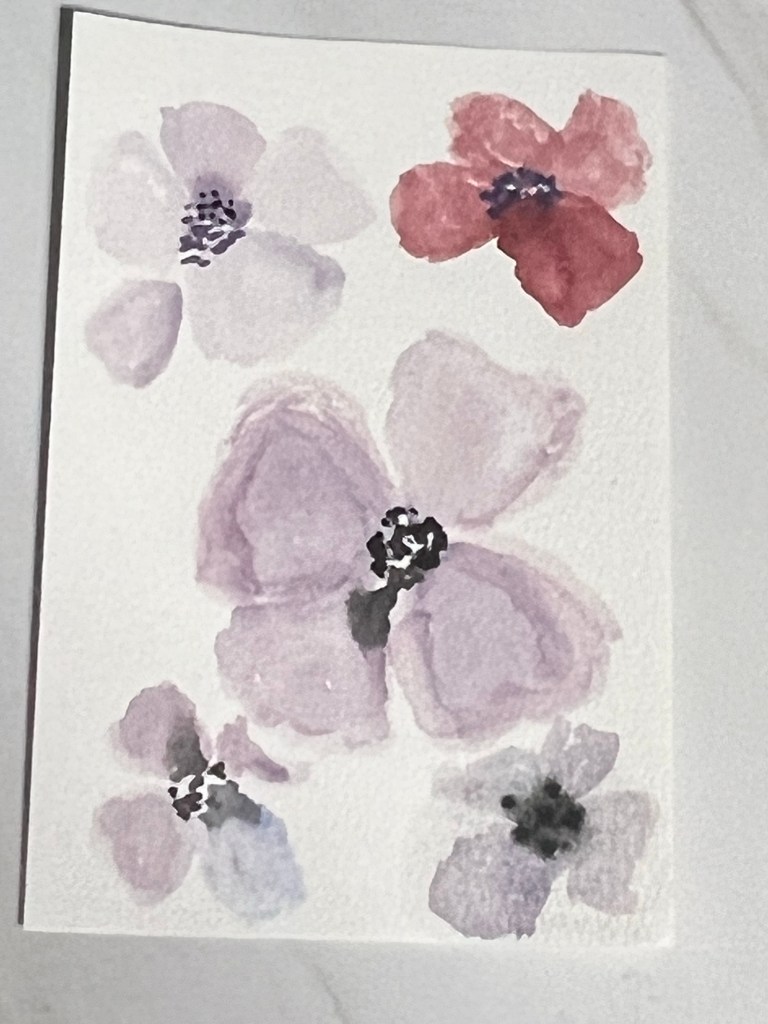 My preferred mediums are acrylics and watercolors. I like what I call “tiny refrigerator art”. These are small painting that you can share as a card or put on your fridge door to brighten your day!