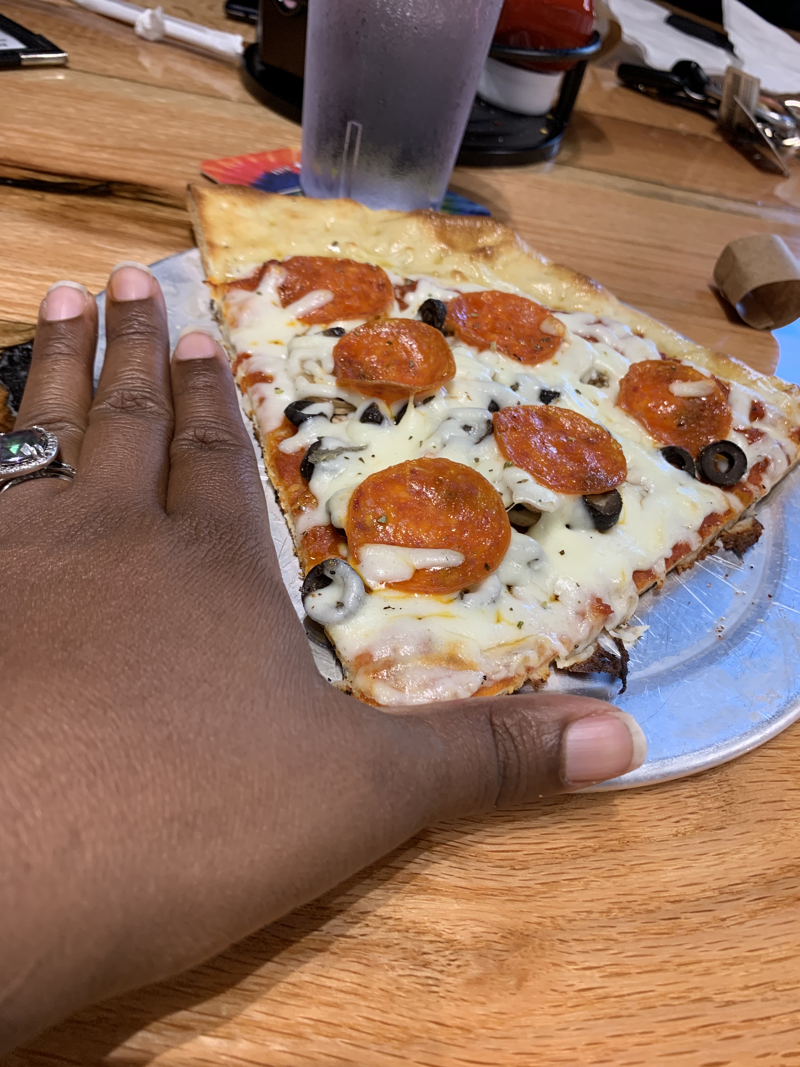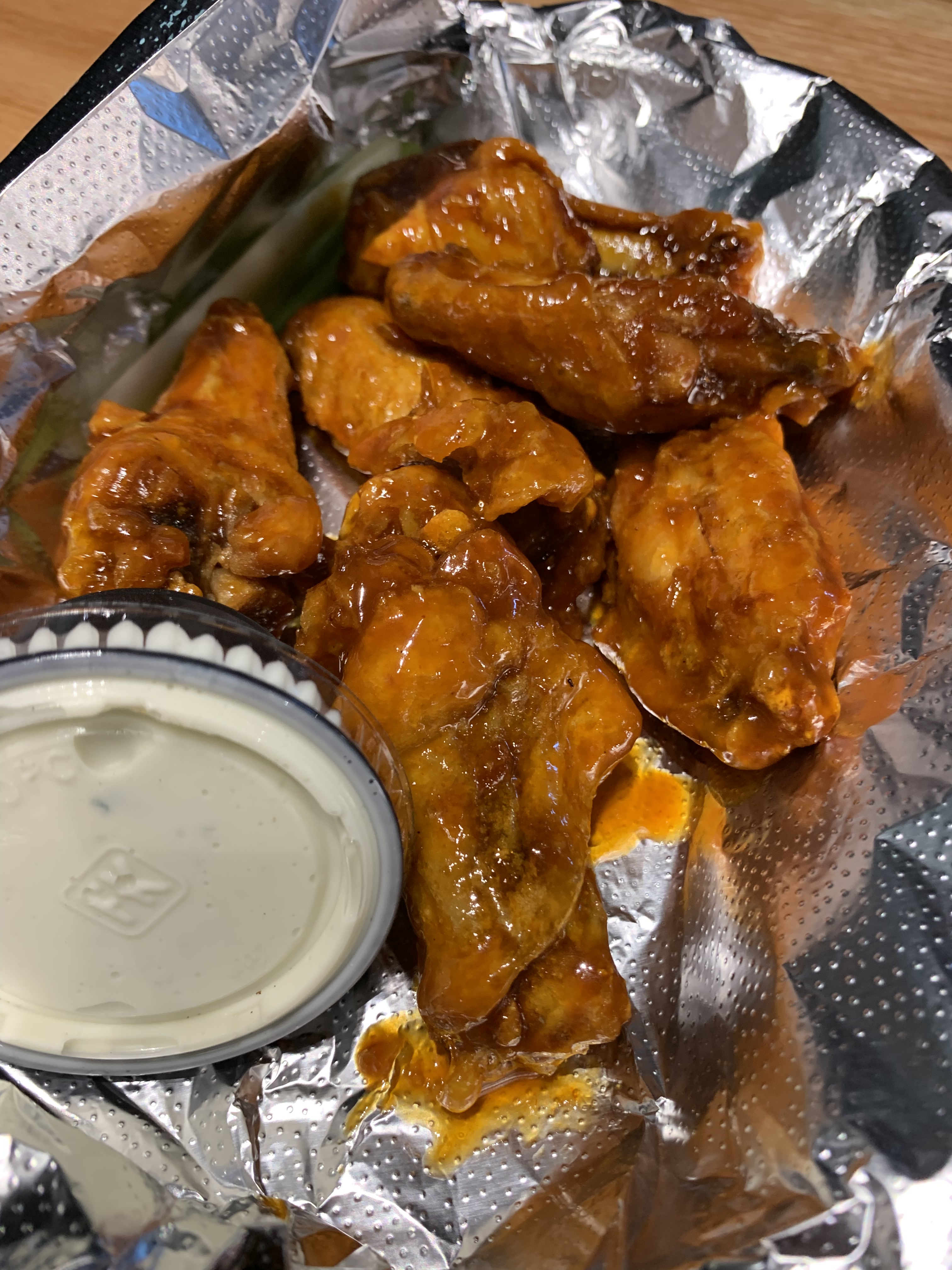 I decided that I wanted wings and pizza, so I ordered a small side of wings and a slice of pizza. I thought about ordering a small pizza, but then decided one slice should be enough. The rationale for that was that if one slice was not enough I could always order another size. But if I ordered a whole pizza, I thought it might go to waste.