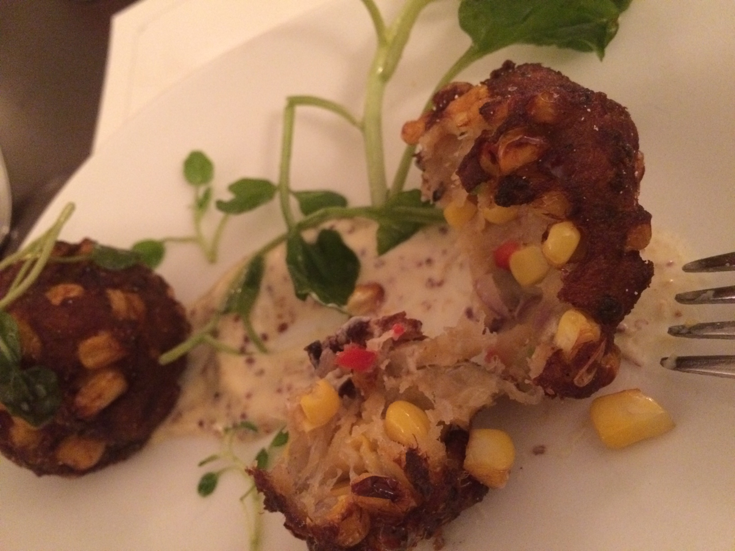 I ordered two appetizers: deviled egg and quinoa tofu fritter. The deviled egg was fine. I needed a little comfort food at the time (I was grieving, but that’s a story for another time).